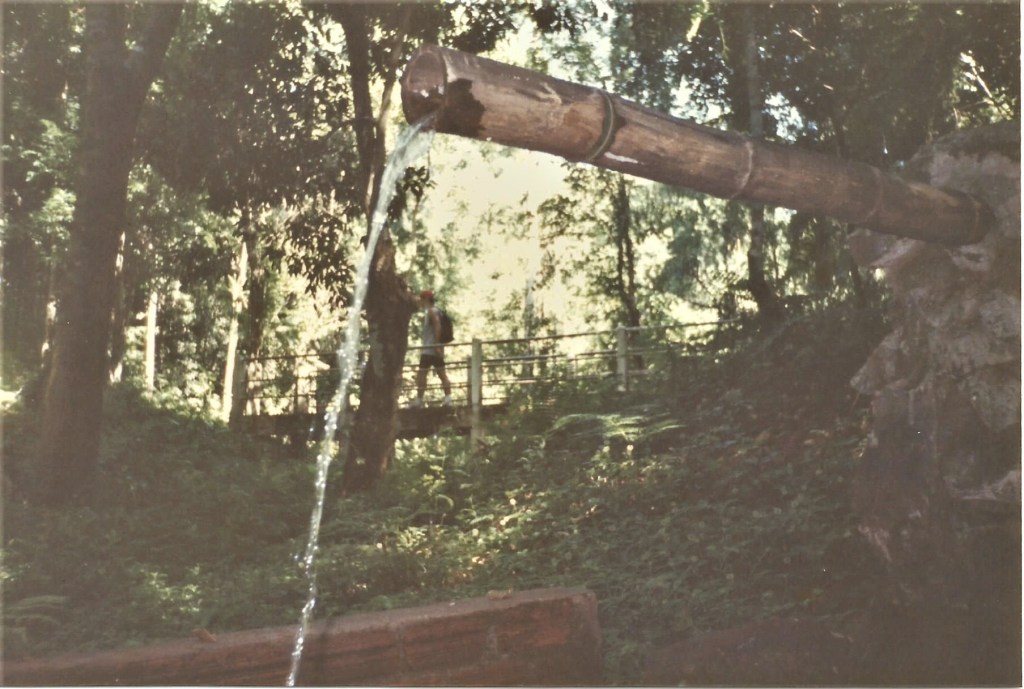 Depois de um lanche num bar da cidade, voltamos ao pedal. Pegamos o asfalto e cruzamos a ponte novamente, rumo a Ibiporã. Quase entrando na cidade, uma grata surpresa nos aguardava. Uma placa nos chamou a atenção: Horto Florestal. Entramos. Lugar muito agradável, com uma reserva de mata nativa de 74 hectares, com trilhas, mina d’água e um grande viveiro de mudas de árvores nativas da região. Logo na entrada já nos disseram que não poderíamos entrar com as bikes. Deixamos elas na portaria, onde o vigilante ficou tomando conta. Percorremos a trilha, de cerca de quatro quilômetros, que desce até uma mina d’água na parte mais baixa da reserva. Depois visitamos uma pequena casa onde haviam cartazes e fotos de parques paranaenses, e também de animais.