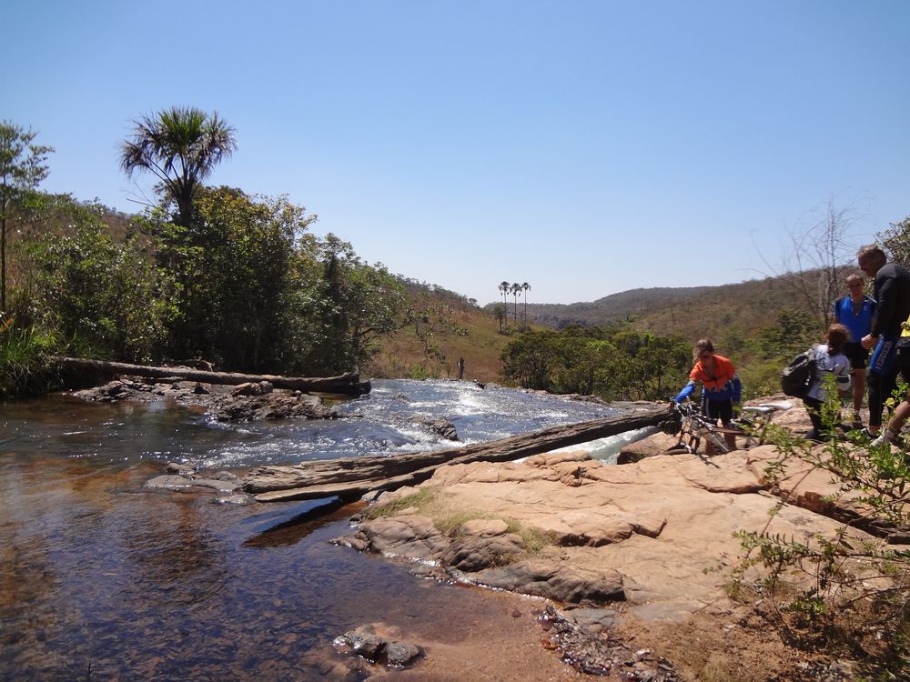 Agora era hora de conhecer a cachoeira. Quem não fez a trilha estava lá, brincando na água. Eles estavam ainda na parte alta do rio, de onde tínhamos uma vista muito bonita, e onde há alguns poços e pequenas cachoeiras.