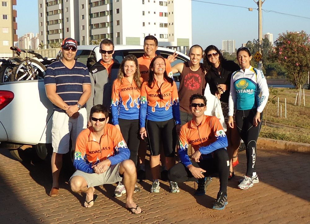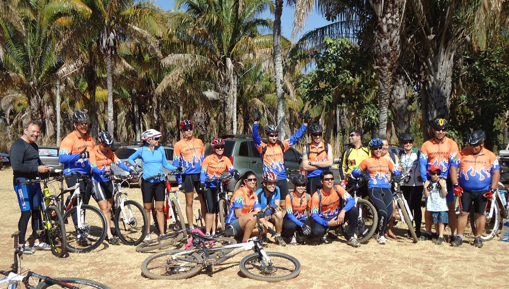 “(…) meu agradecimento a todos os amigos do pedáguas que foram nessa nossa aventura pelas estradas empoeiradas do meu Goiás: Evandro, Leidiane, Gabriel, Carlos Duarte, Ivson, Delaine, Sid, Tatiane, Alexandre Vilela, Isa, Luciana, Julia e Marcelo. Foi simplesmente maravilhoso ter a companhia de pessoas tão especiais, amigas e companheiras. E a toda minha família e amigos, que receberam nosso Pedáguas como verdadeiros anfitriões: Gilson (meu bem rsrs!), Bianca, Gustavo, Lucas, Tio Kim, Guiomar, Augusto, Jr. e Regina, Abel, meu muito obrigada mesmo! Quero agradecer em especial aos meus sobrinhos, Jr. e Regina, que não mediram esforços para que tudo fosse o sucesso que foi. Desde escolher as trilhas, o restaurante, o hotel fazenda, cardápio do almoço etc. Abdicaram do tempo deles em nossas tantas reuniões e mesmo doente, a Regina estava lá, se esforçando para nos acompanhar no pedal. Garota você é incrível, não me esquecerei disso jamais! Vocês dois são maravilhosos! Meu bem, não preciso nem falar o quanto você foi importante no passeio inteiro. Seu companheirismo e dedicação, atenção com todos. Você deixou de ir na sua prova de cavalos, que pra você é tão importante, para nos acompanhar nessa aventura. Muito, muito obrigada! Carlos Duarte e Evandro, a contribuição de vocês aqui durante toda a organização também foi fundamental para que tudo desse certo. Valeu demais! Enfim, foi tudo preparado com muito carinho, mas, como tudo na vida, sempre existem falhas. Me perdoem se algo não saiu como esperado. Quero só deixar registrado, pra mim valeu a pena cada minuto de tempo despendido nessa organização e durante o final de semana inteiro. Estou simplesmente sem palavras! Enfim, temos muitas histórias pra contar, muitas fotos pra mostrar. Um beijo grande a todos que foram e para os que não puderam ir, outras aventuras virão! Isso é certo.” (Eldenice “Deny” Rocha)