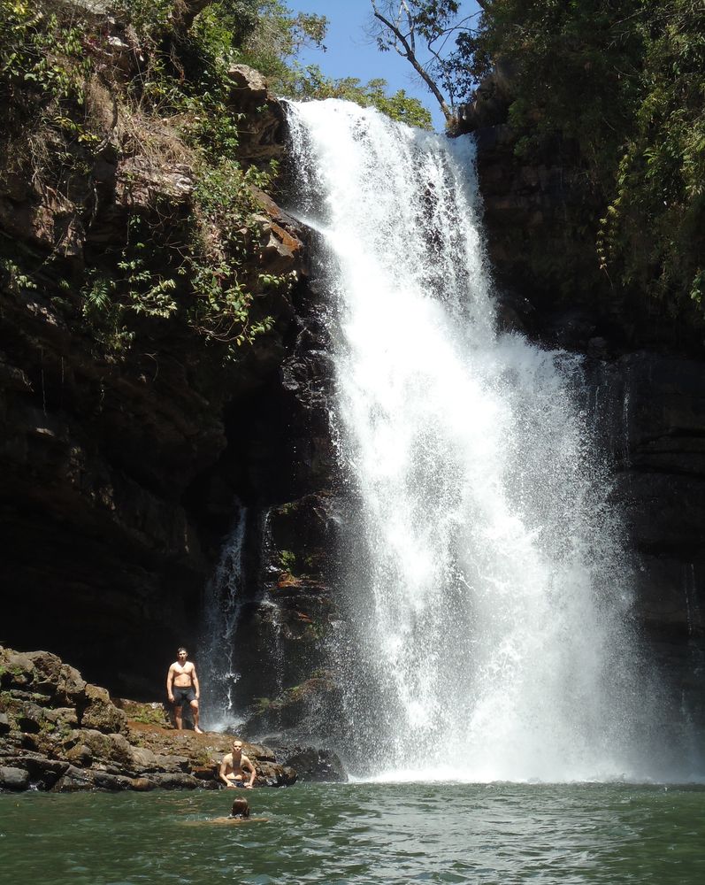 Quando chegamos, eles seguiram-nos e descemos até a Cachoeira do Indaiá, que fica rio abaixo.