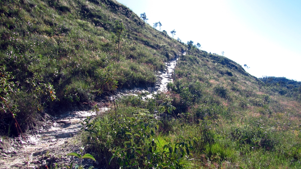 Depois de alguns quilômetros por estradas de chão, cruzamos o Córrego Capitão do Mato e, na frente de um centro de recuperação de usuários de droga, atravessamos uma cerca. Entramos no Parque Estadual dos Pirineus.