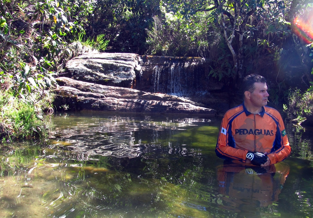 Aproveitamos para curtir as geladas águas do Córrego Capitão do Mato, que forma o Sonrisal.