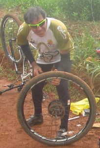 Enquanto isso, Dalton mexia no freio da bike do Marcão. Ele não conseguiu consertar. Quando viu que não teria jeito, começou a remontar a bike e disse para o resto do grupo seguir na frente. Salém partiu imediatamente. Emídio não. Disse que esperaria o amigo Marcão. Emídio e Marcão são bons companheiros, parceria fraternal. Terminada a montagem da bicicleta, os três partiram.