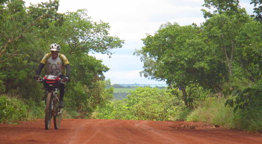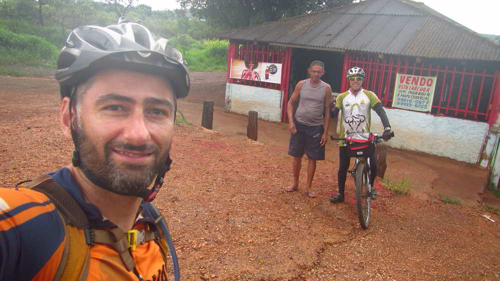 Partimos às 14h. Seguimos pela GO-010, sentido leste. Cruzamos o Rio São Bartolomeu pela ponte da rodovia e subimos pelo asfalto por dois quilômetros. Esperei Cristóvão no alto, no início da estrada de chão. Fiquei raciocinando. Faltavam três horas para eu perder a van e faltavam exatos quarenta quilômetros de pedal. Como Cristóvão não iria andar mais rápido, tive que o abandonar. Ele estava em seu quintal e saberia se virar. Antes de acelerar pelos prados verdejantes que tinha pela frente, Cristóvão pediu que eu verificasse, na loja de materiais para construção do São Bartolomeu, se havia cola para remendo, já que ele havia perdido o seu, e avisasse-o por mensagem.