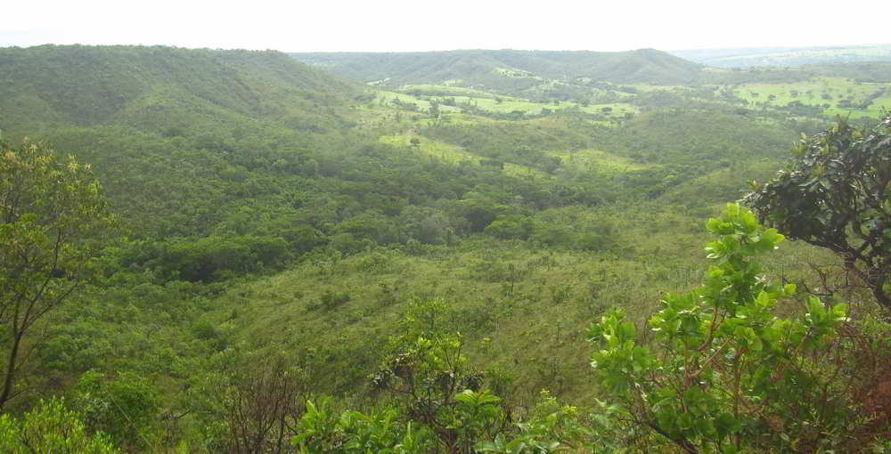 Seguimos pelo chapadão por cinco quilômetros e pegamos estrada à esquerda. Tudo que subimos, iríamos descer para atravessar o Mesquita e subir do outro lado. Há belos trechos de mata nas partes mais íngremes dos dois lados do vale. No meio da descida, uma abelha ferroou minha barriga. A gente só pensa nos perigos quando os acidentes acontecem. Se eu fosse alérgico, já era, não levava nenhum remédio. Felizmente, não sou alérgico e segui apenas com a barriga dolorida.