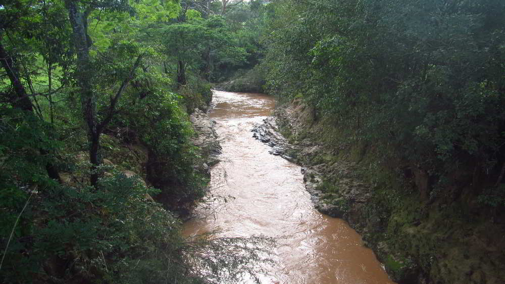 A estrada estava com muitas poças d’água. Pelo jeito, choveu muito na região durante a madrugada. O Rio do Macaco, primeiro rio que cruzamos, estava agitado e com águas barrentas.
