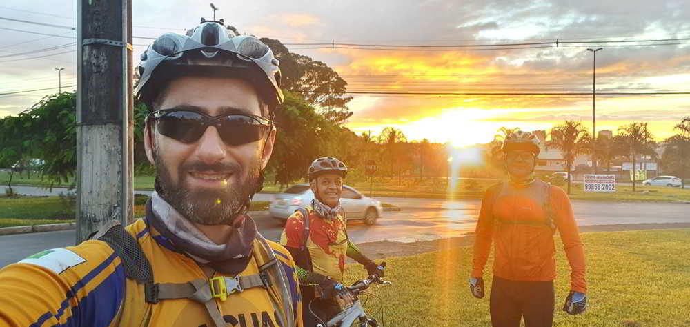Saí de casa sem meias (sem meias???) e reuni-me com os amigos em Águas Claras, às 6h30 da manhã. Lá estavam Alexandre Bastos, Silvio Sá, Evaldo dos Santos e eu. O sol nascia quando partimos, pedalando pela ciclovia da EPVP.