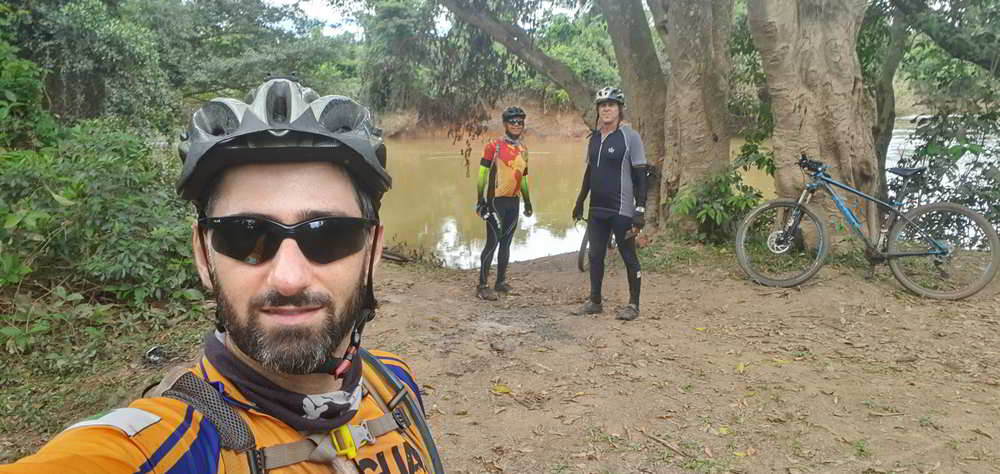 Num pedal urbano que fizemos há algumas semanas, Cristóvão Sempre-Ele Naud e Alexandre Sales Bastos reencontraram-se depois de muitos anos. Alexandre lembrou-se de minha saga De catedral a catedral ao rever Cristóvão. Alexandre acompanhou-me no primeiro dia de viagem, em 2014, quando pedalamos de Brasília até o Rancho Cristaluna, propriedade de Cristóvão, onde foi meu primeiro pouso; e Cristóvão integrou-se à jornada, participando parcialmente da primeira fase e integralmente da segunda e terceira.
