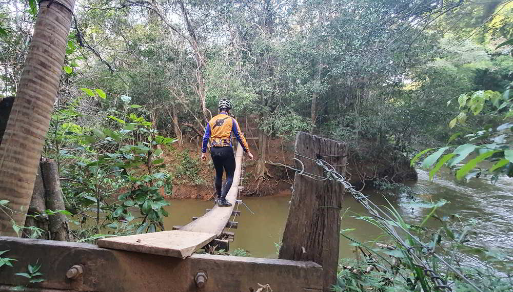 A “temível ponte do Cristaluna”, uma pinguela bem feita, bota medo até nos mais destemidos ciclistas.