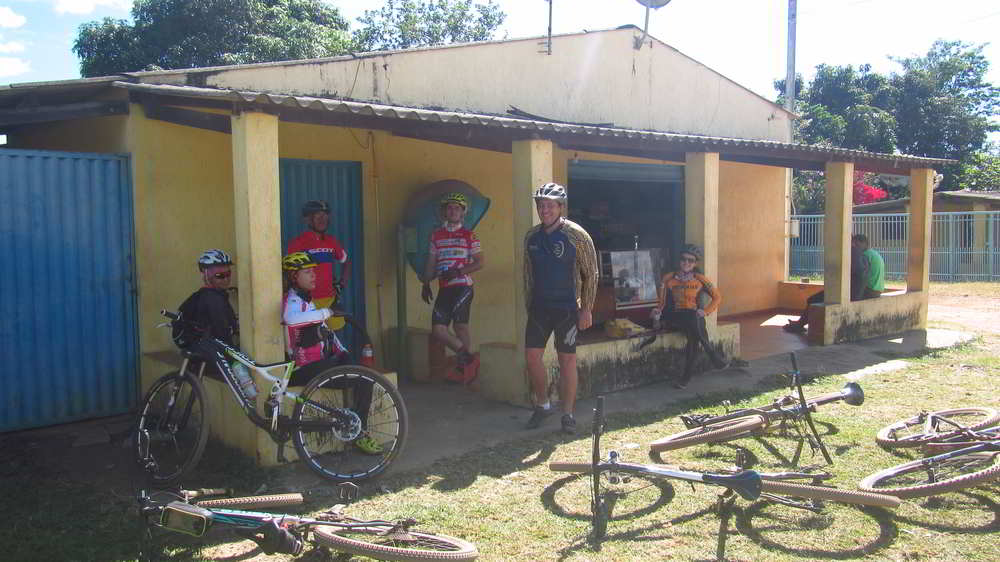 Dessa vez, descemos a Quatro por Quatro. Seguimos pelas estradas de terra até a comunidade Morrinhos, também chamada de Mamoneira por ser vizinha à Fazenda Mamoneira. Paramos no mercadinho do local para tomar um Gatorade. Os amigos aproveitaram para comprar rapadura.
