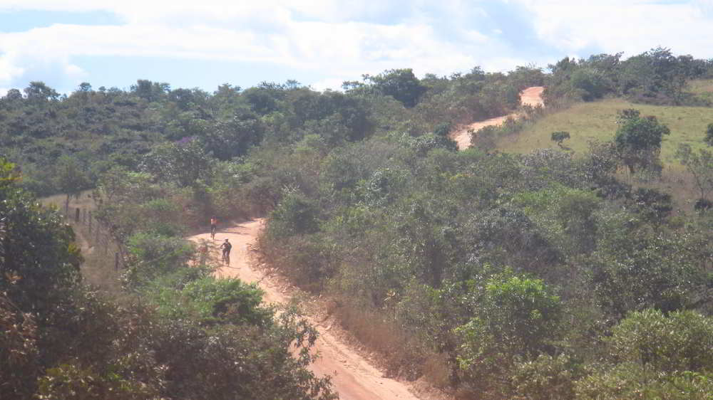 A descida terminou quando cruzamos o Rio Areias. Essa trilha tem uma característica interessante: as subidas estão concentradas principalmente no trecho até o Oásis, que está a doze quilômetros de Edilândia. Então, passado o rio, começou a subida. Seguimos entre fazendas e lindos trechos de cerrado preservado.
