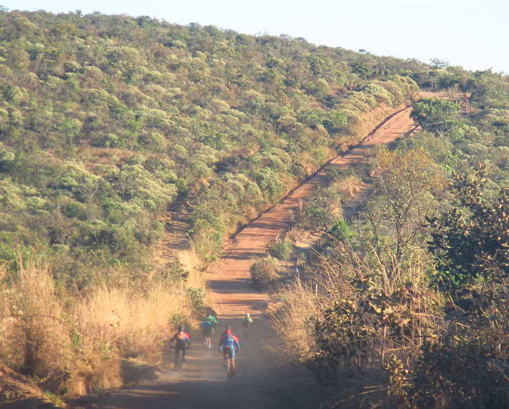 Saímos todos juntos, mas logo nos separamos. Segui com Rodrigo na frente. O Oásis nos esperava. A subida é cansativa. Depois de passar pelo Córrego do Falcão, a estrada passa por trechos de areia, degraus, erosões, sempre subindo.