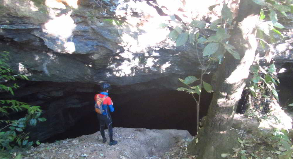 O acesso à gruta deve ser guiado. Nós só demos uma olhada na entrada, tiramos algumas fotos e voltamos para a estrada. O resto da turma tinha seguido pedalando, mas não demoramos muito para alcançá-los.