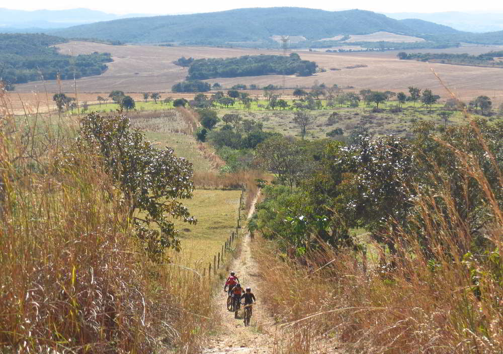 Eu imaginava que a partir dali, a trilha iria render mais, e a parte que eu me lembrava, de Morrinhos até a margem do Rio Areias, realmente rendeu. Só há uma subida nesse trecho e rapidamente se chega ao Areias, pedalando-se quase sempre na sombra de grandes áreas de cerrado preservado. Em vez de subirmos rumo a Edilândia, entramos à direita logo depois de cruzar a ponte. Seguimos no sentido do Recando dos Pássaros. Dali em diante, o caminho era desconhecido para mim, e teve muita subida. Minha bateria começou a ficar fraca novamente.