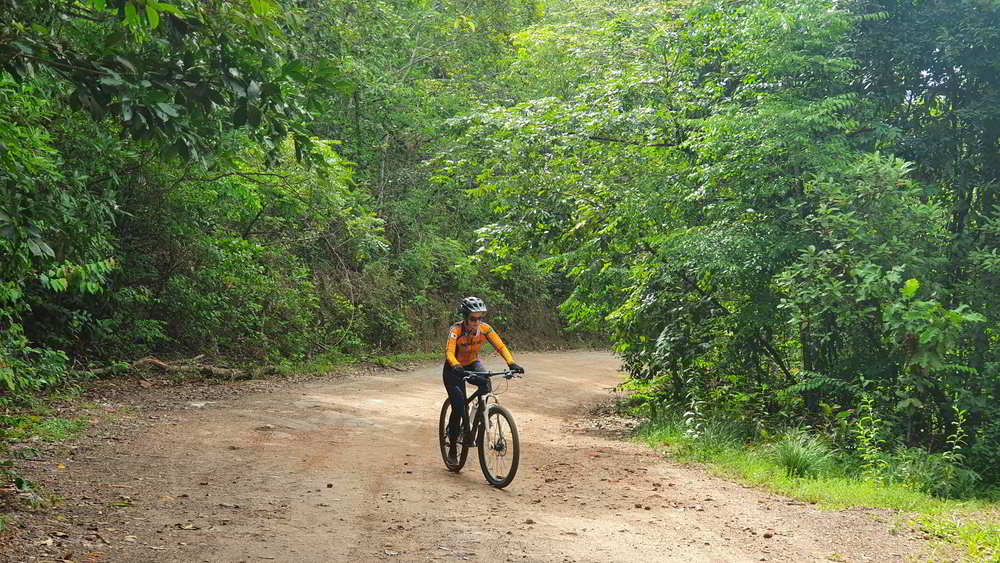 Choveu a noite toda. Eu pensei que não conseguiríamos pedalar no domingo, mas o dia amanheceu sem chuva, apesar de o céu estar nublado. Nosso objetivo era visitar a Cachoeira do Macaco. O acesso à cachoeira está proibido, mas eu consegui autorização prévia para a visita.