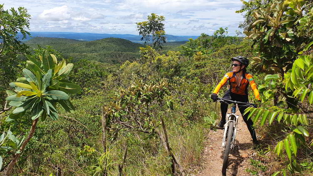 No topo, há vários singletracks mal definidos, mas que seguem mais ou menos na mesma direção. Leidiane passou tranquila, sem crises nem sustos. O trecho de singletracks no alto da serra tem em torno de 2,5 quilômetros.