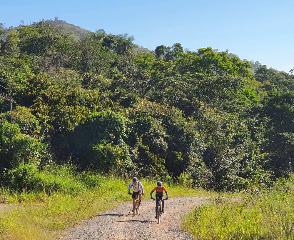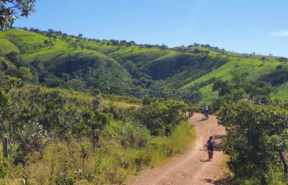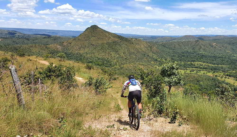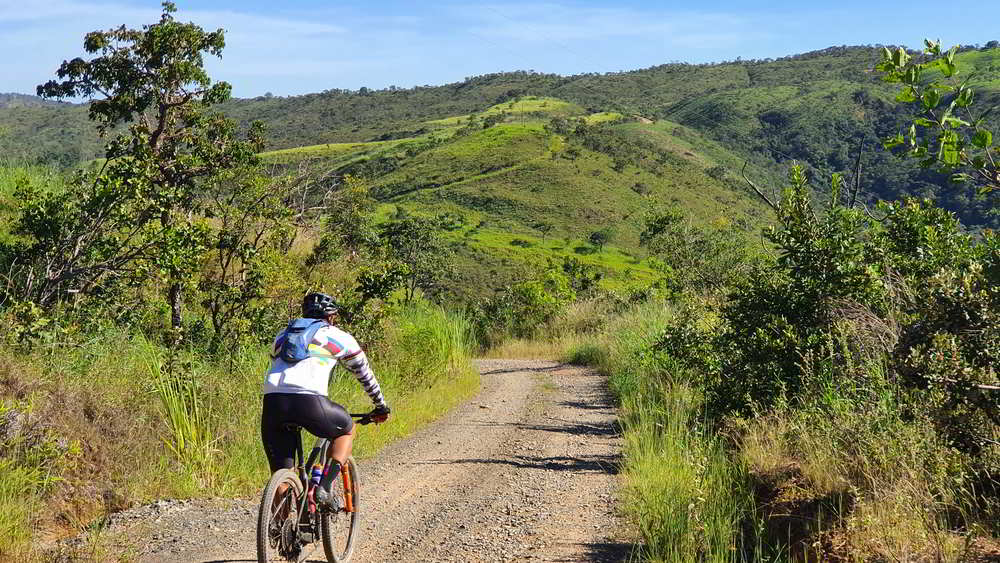 O primeiro desafio teve 2,5 quilômetros com 166 metros de subida e, depois de um rápido alívio, mais 2 quilômetros com 126 de subida. Adentramos em belas áreas de cerrado. Morros cobertos de vegetação cortados pelas estradinhas que tanto amamos.