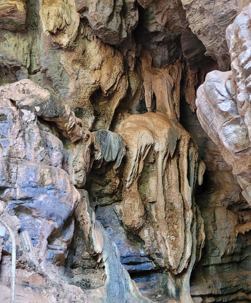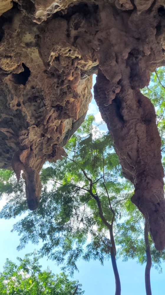 A gruta é impressionante desde a chegada. Antes de entrar, tivemos a sorte de avistar um pica-pau-de-cabeça-vermelha, vibrante e barulhento como só ele.